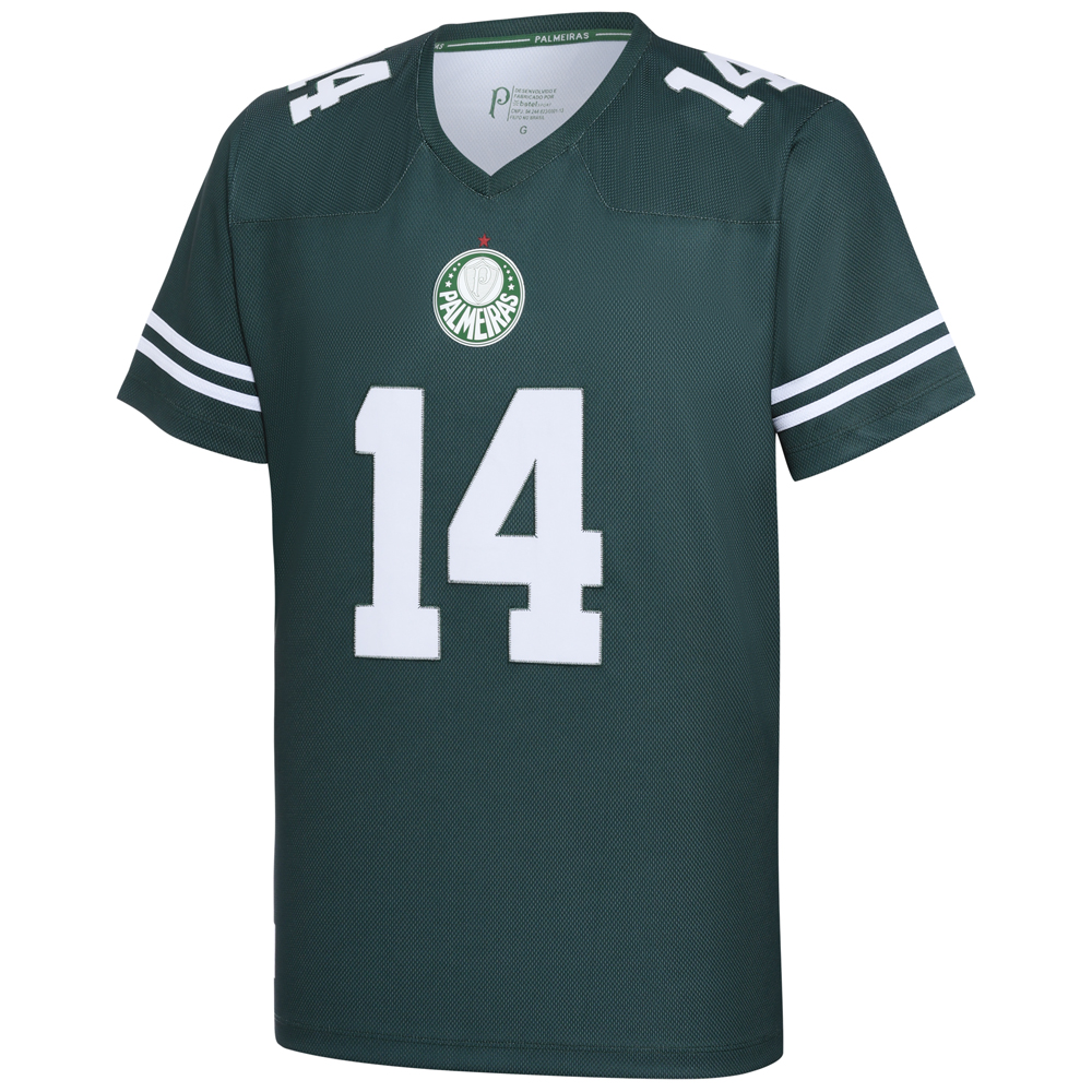 Mostre seu amor pelo Palmeiras e pelo futebol americano com a Camisa Palmeiras Oficial American Football - Verde. Inspirada nos uniformes de futebol americano, esta camisa combina estilo esportivo e paixão pelo Verdão.