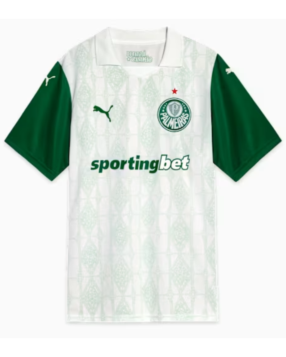 Com design refinado e simbologia marcante, a camisa traz estampas que remetem às conquistas históricas do Verdão, incluindo as 12 estrelas que representam os títulos brasileiros e o icônico “P” envolto em louros, símbolo máximo da vitória alviverde. Os elementos inspirados na bandeira do Brasil reforçam o orgulho e a grandeza de um clube que é patrimônio nacional.