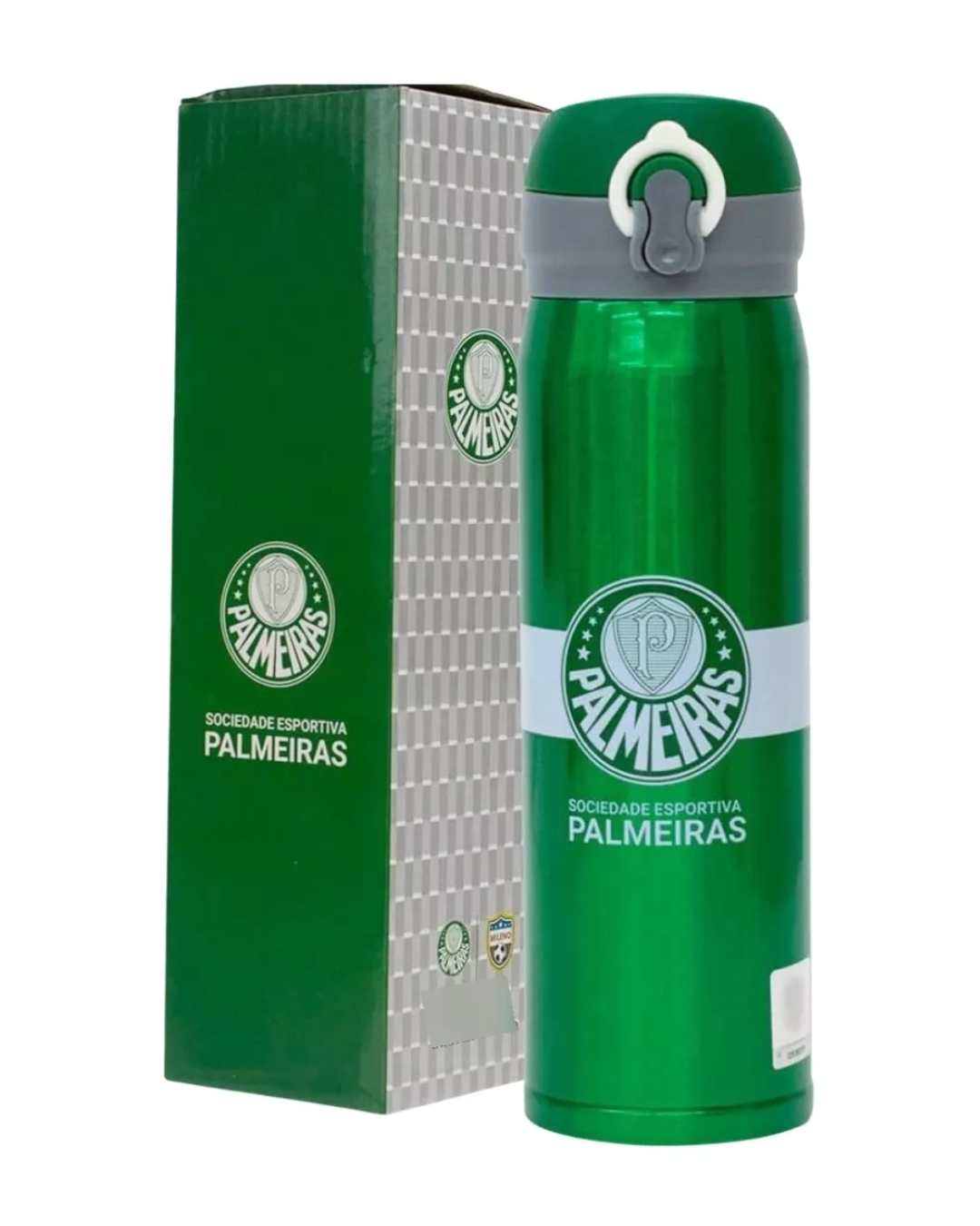 Para os torcedores apaixonados pelo Palmeiras, apresentamos a Garrafa Térmica Palmeiras de 420ml.